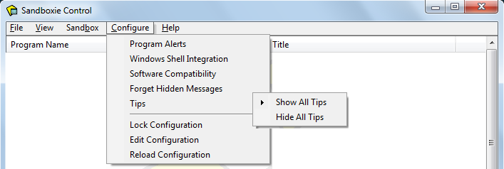 The Show All Tips command tells Sandboxie to disregard any such use of the checkboxes, and resume displaying of all warnings and notifications.