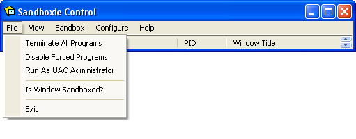 Sandboxie Control > File Menu
