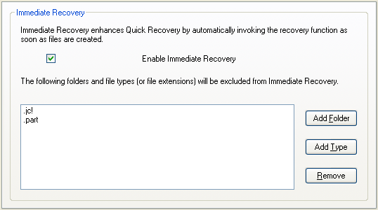 It may also be desirable to keep Immediate Recovery enabled, but exclude some file types from Immediate Recovery. For example: You may want to receive Immediate Recovery notifications about document files saved to the (sandboxed) desktop, but not about shortcuts (.LNK) files that may be created on the desktop during the installation of sandboxed programs.