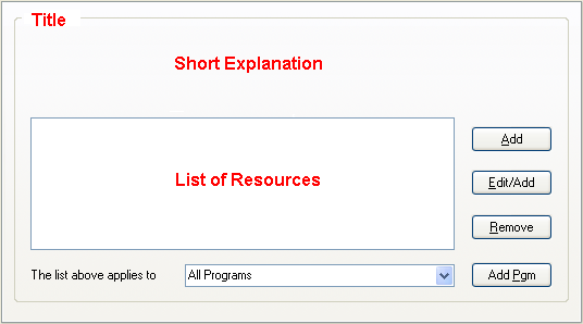 - The resources in the list may apply only to a particular program. Generally, however, they apply to All Programs.