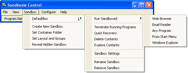 Sandboxie Control > Sandbox Menu